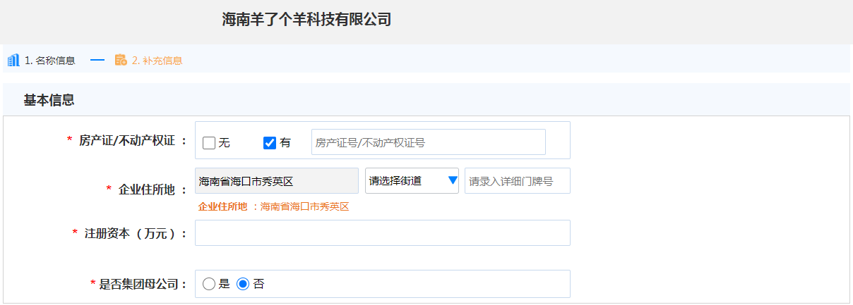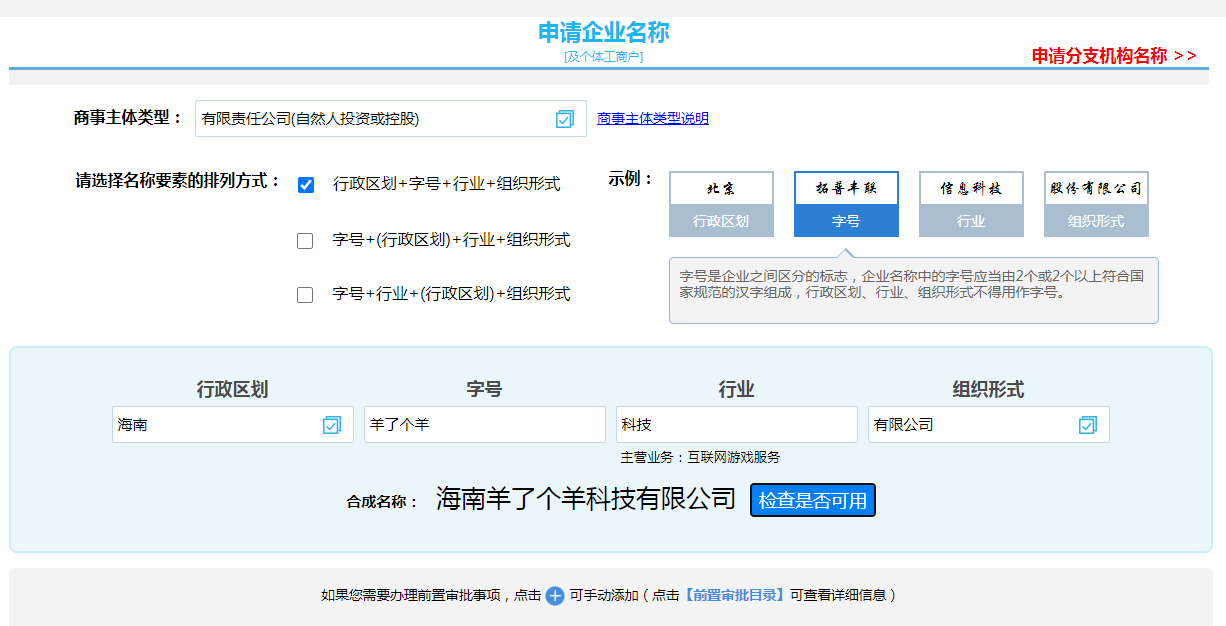 1、先申請企業(yè)名稱,確定羊了個(gè)羊這個(gè)字號(hào);